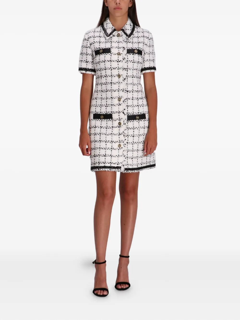 Karl Lagerfeld Geruite tweed midi-jurk met korte mouwen – Wit