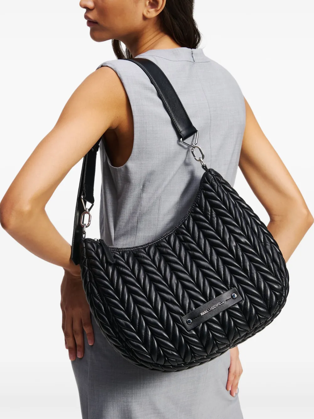 zwart gewatteerd design enkel handvat afneembare en verstelbare schouderband logoplakkaat ritssluiting aan de bovenkant