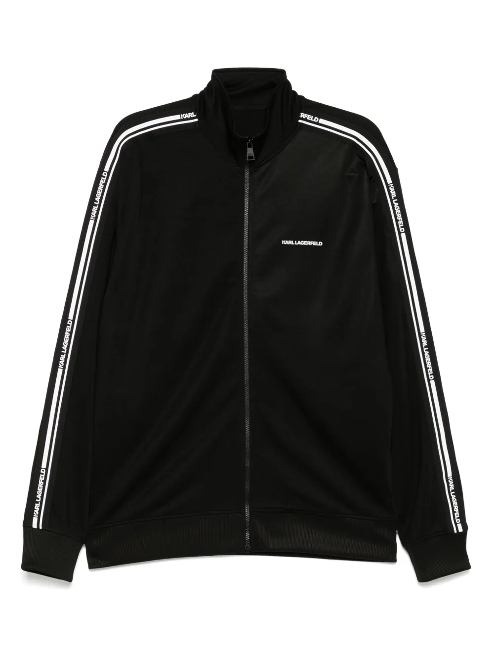 noir fermeture zippée devant col montant poches latérales fendues ourlet et bords côtelés