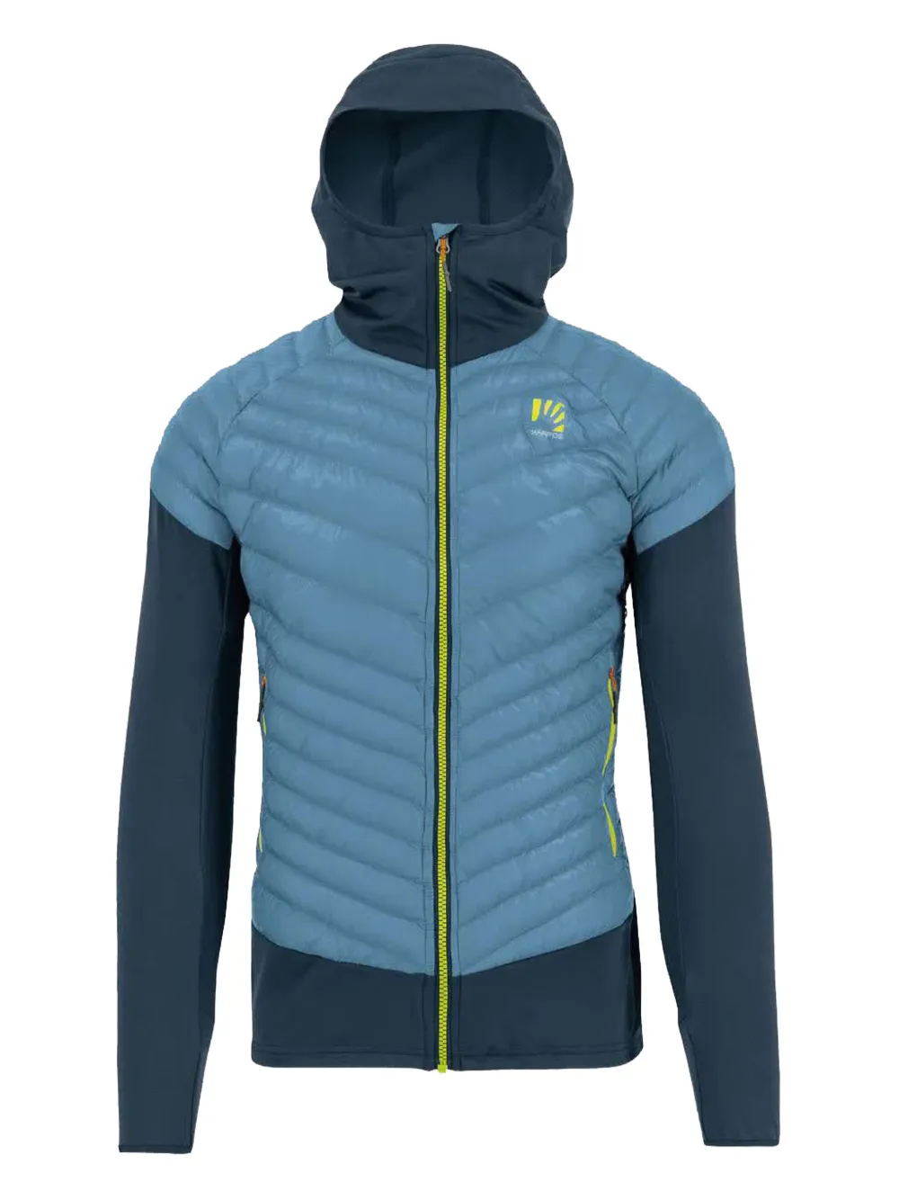 bleu design matelassé encolure à capuche manches longues empiècements en tissu stretch fermeture zippée centrale