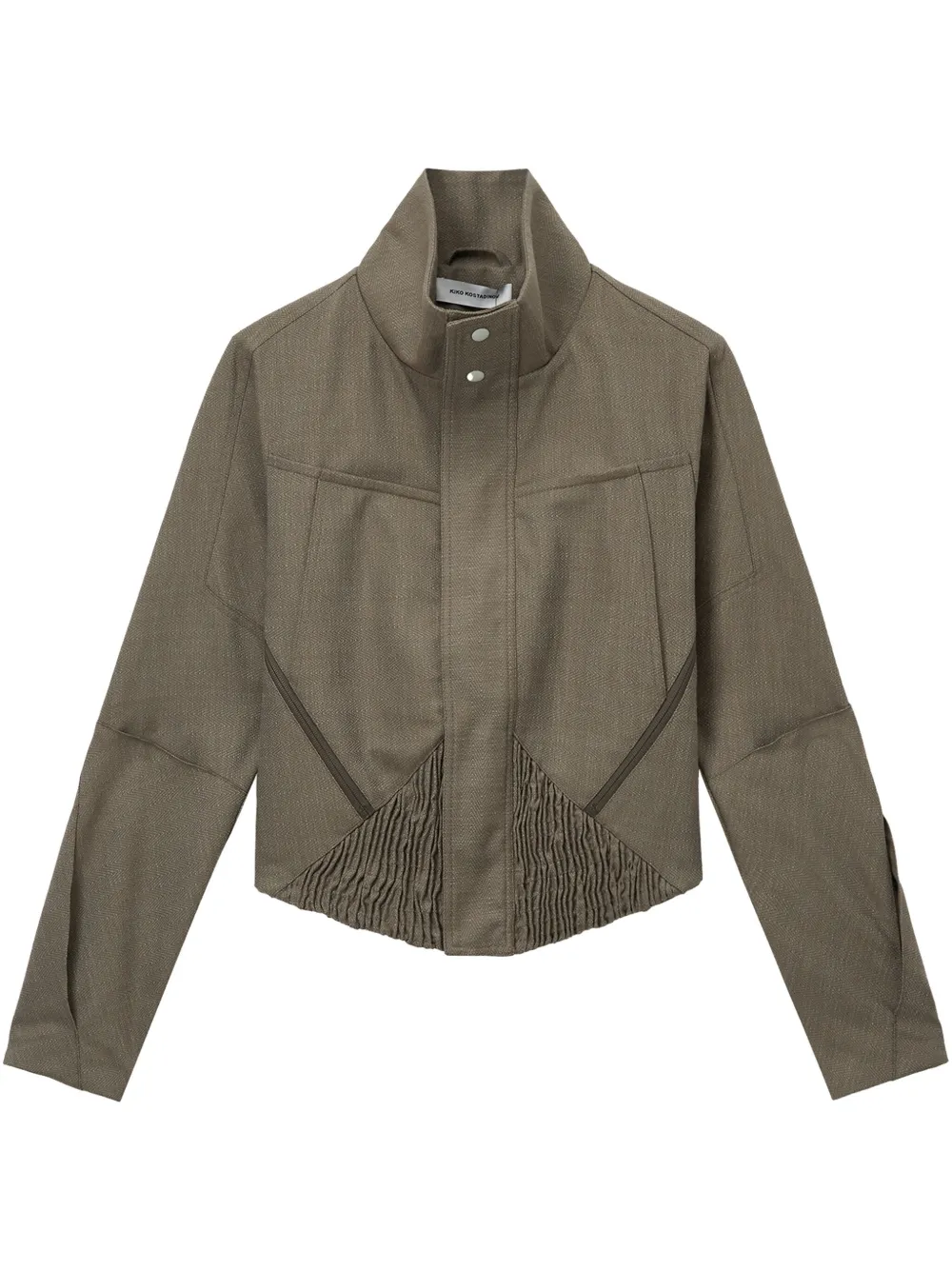 brun taupe fermeture dissimulée sur le devant col montant manches longues ourlet droit