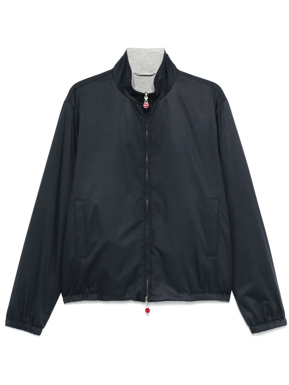 bleu marine fermeture zippée à double sens sur le devant deux poches passepoilées avant poignets élastiqués ourlet élastiqué