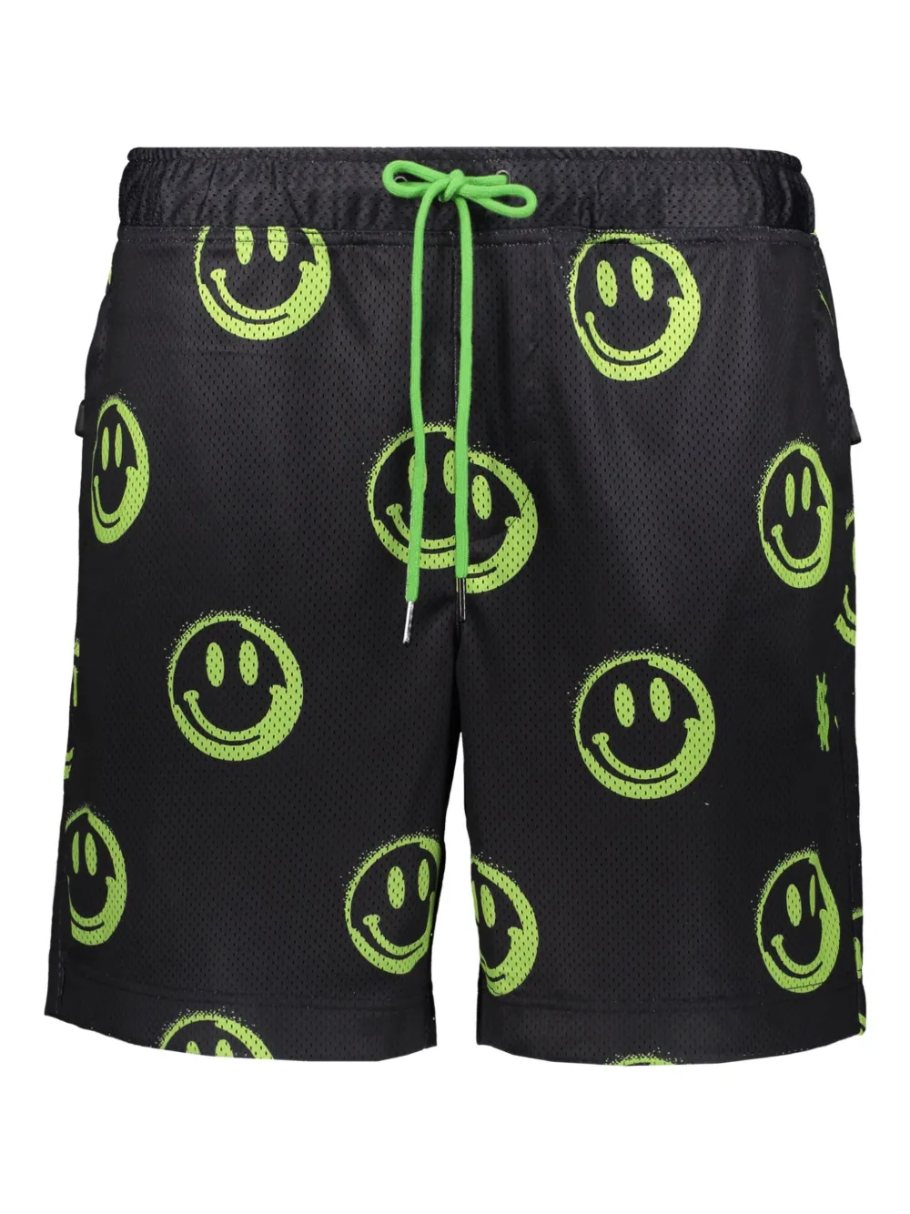 noir motif Smiley taille à lien de resserrage poches zippées fabrication en mesh