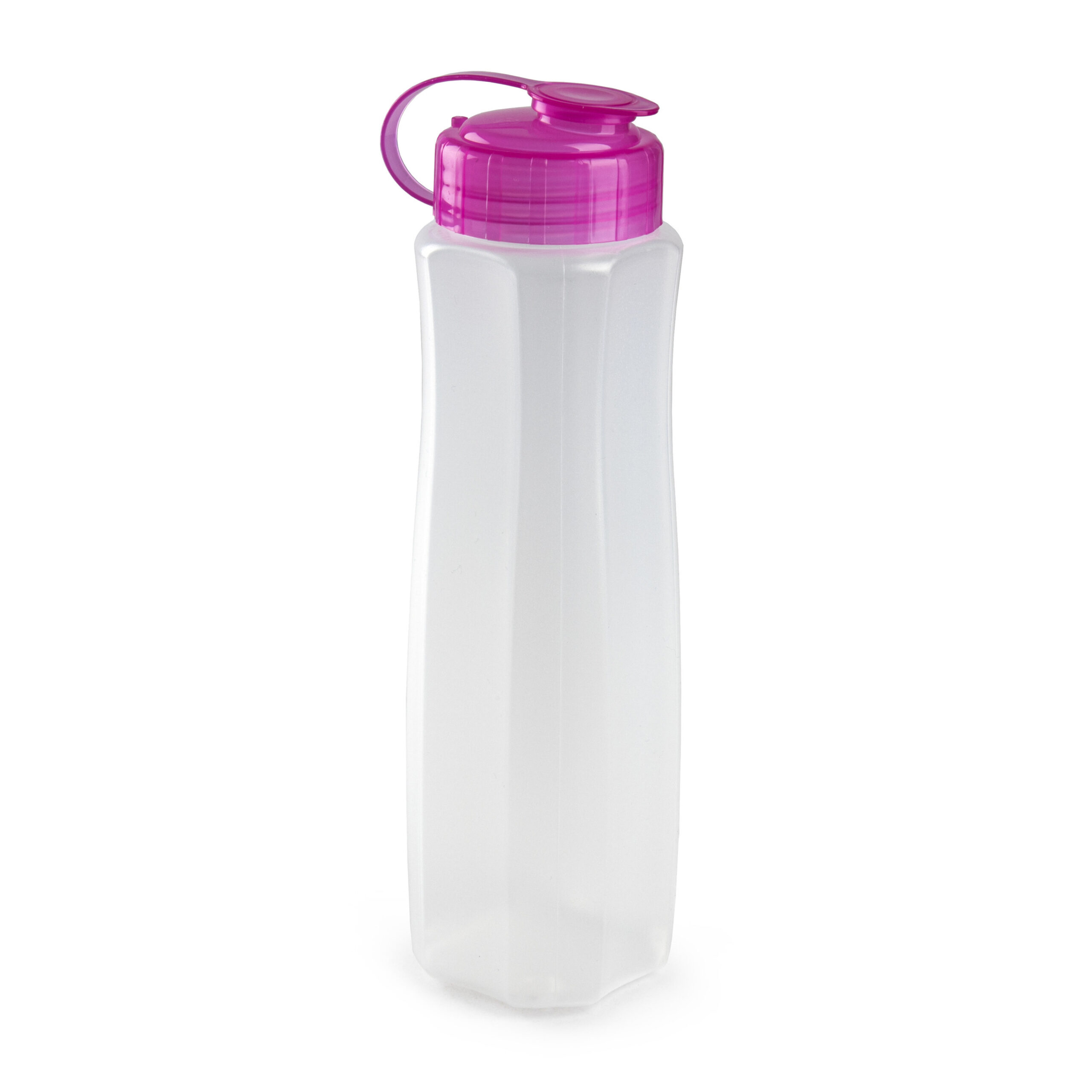 Kunststof waterfles 1000 ml transparant met dop roze. Handige multifunctionele drinkfles voor sapjes en water. Formaat: 28 x 8 cm. Kan in de vriezer en magnetron.