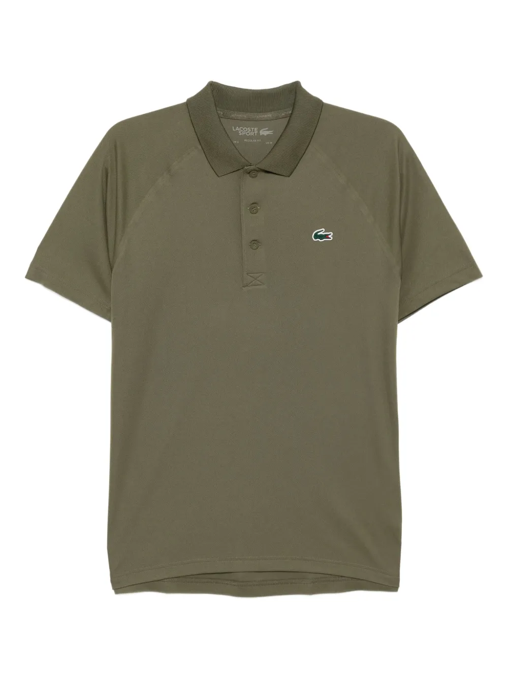 vert kaki patte de boutonnage sur le devant manches courtes col polo logo brodé sur la poitrine
