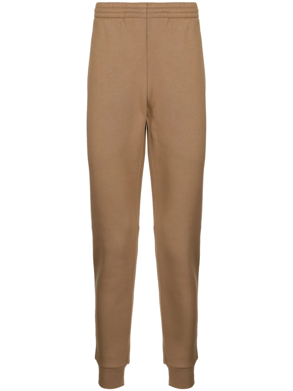 Marron camel, coton stretch, patch logo sur le côté, ceinture élastique, poches latérales fendues, chevilles élastiques, coupe fuselée, doublure en polaire.