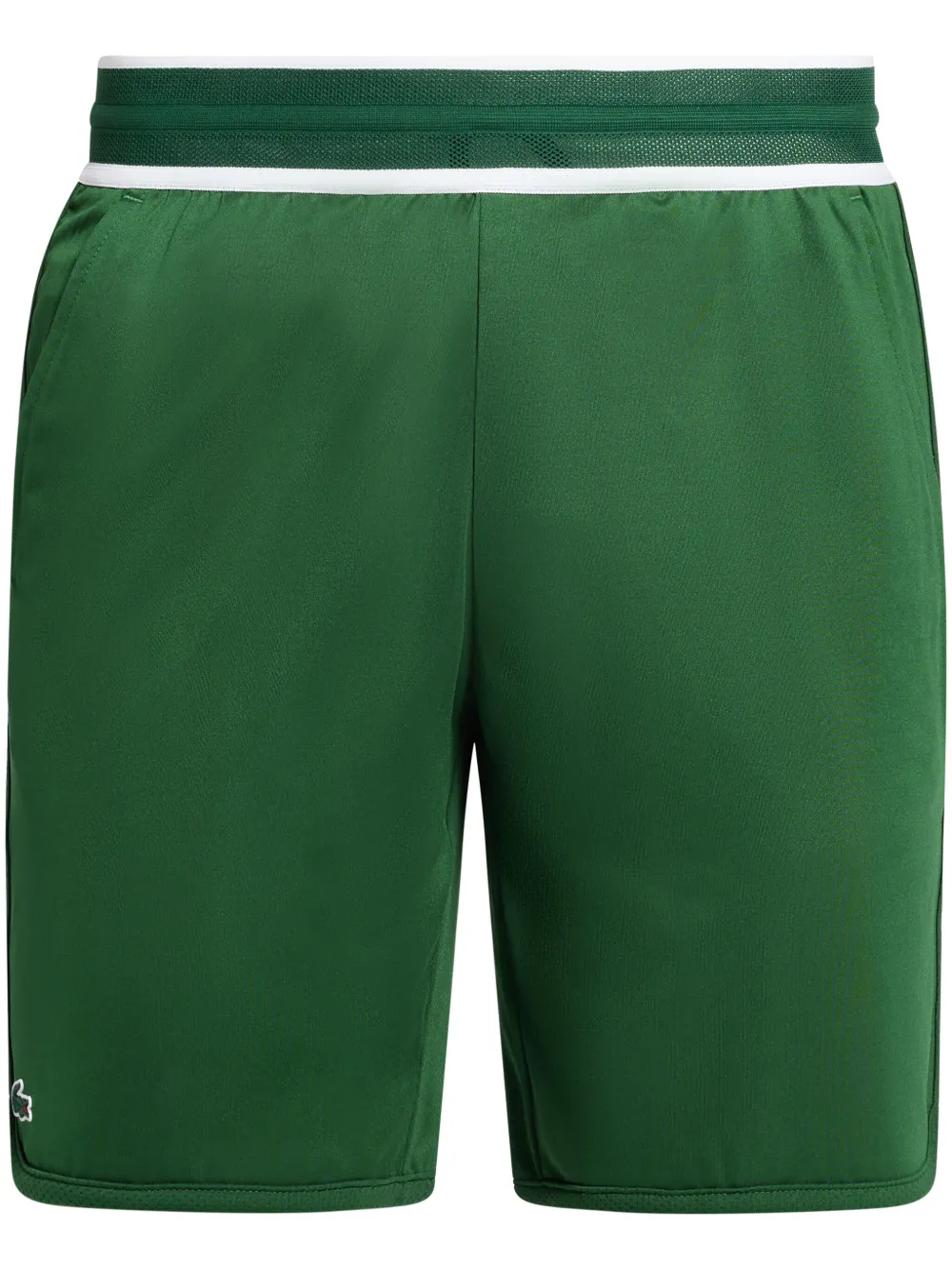vert polyester ceinture élastique logo brodé sur le côté deux poches latérales passepoilées longueur au dessus du genou