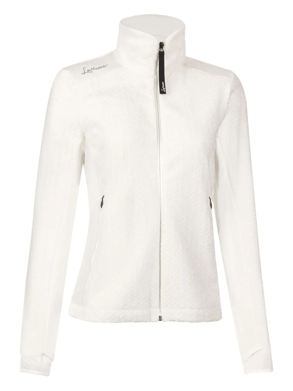 blanc cassé polaire texturée fermeture zippée col montant manches longues deux poches zippées