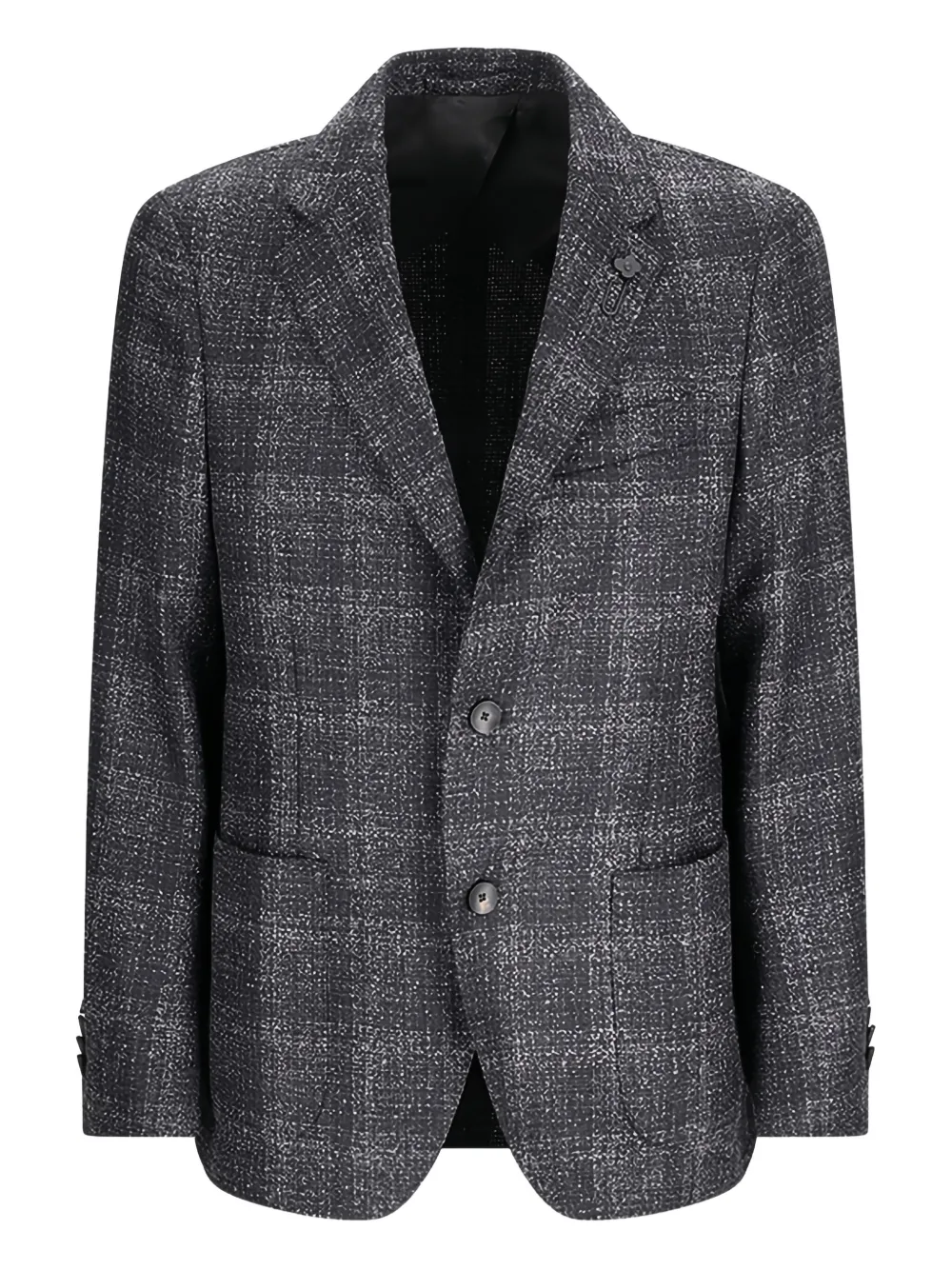gris foncé motif moucheté boutonnière sur le devant poches plaquées devant revers crantés manches longues