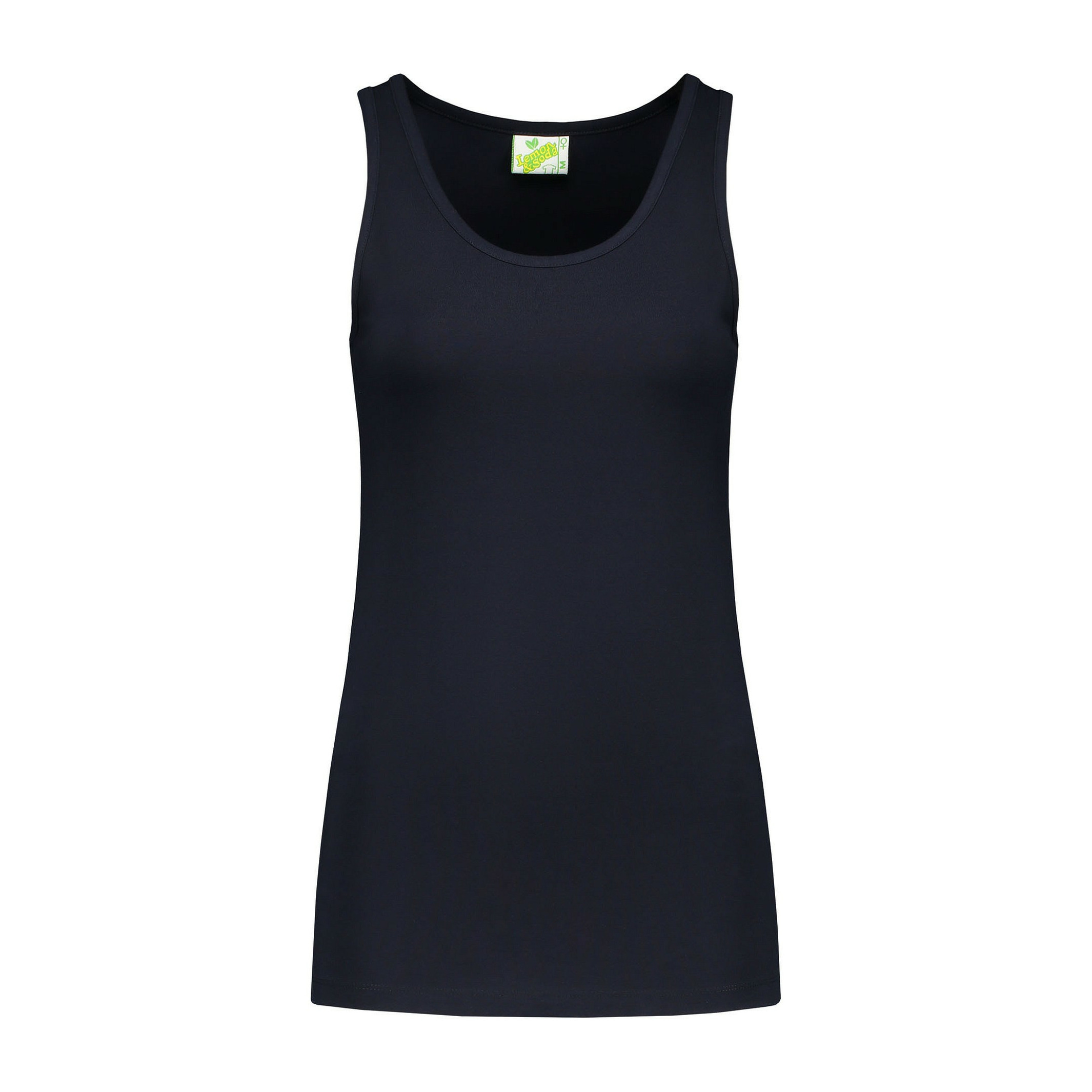 Sport singlet of mouwloos t-shirt voor dames in de kleur donkerblauw. Dit mouwloze shirt is geschikt voor een work-out, maar kan natuurlijk ook dienen als basis voor onder een blouse of andere kleding. Draagt comfortabel op de huid dankzij de mooie kwaliteit katoen met elastaan, langere lengte en aansluitende pasvorm. Dit sportieve singlet is dus multifunctioneel en geschikt voor iedere gelegenheid.