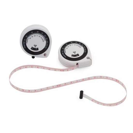 Een lichaamsmeetlint met een ingebouwde BMI meter. Het meetlint heeft een max. lengte van 150 cm. U zet het meetlint op de juiste omvang vast, stelt uw gewicht in door het klokje op de houder te draaien en kunt daarna uw BMI aflezen. Afmeting: ca. 5,5 x 6,5 x 2 cm.