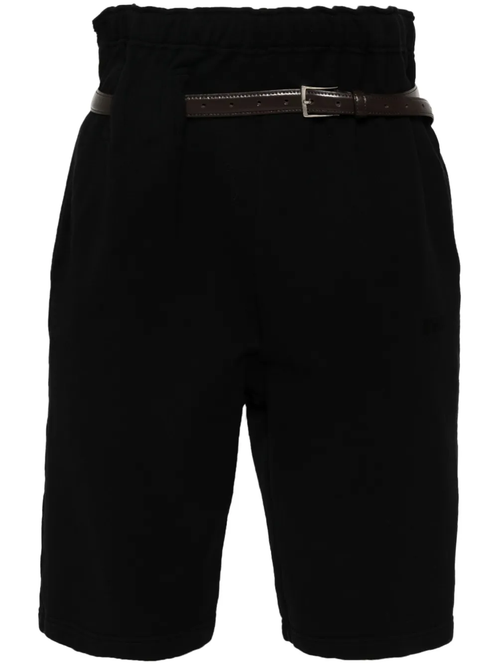 noir coton texture jersey détails de découpes logo brodé sur le devant taille haute longueur genou poches plaquées latérales doublure French en éponge ceinture ajustable et détachable taille élastique à lien de resserrage