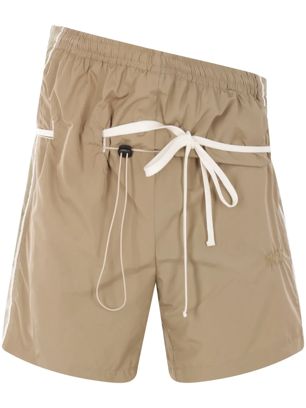 beige sable ceinture élastique poches latérales fendues logo brodé sur le devant