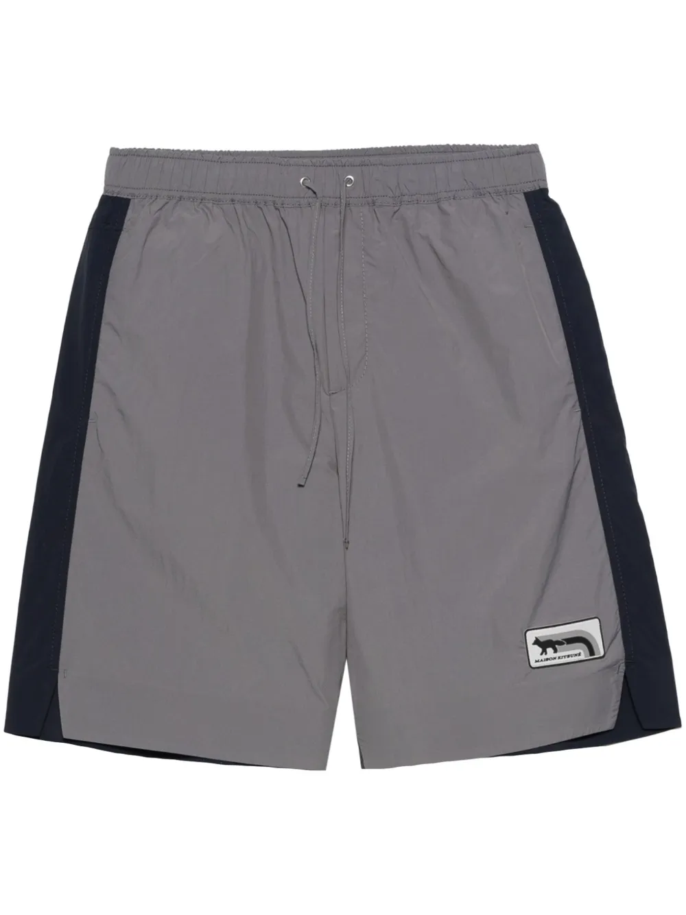 gris moyen/bleu marine structure légère design à empiècements colour block poches latérales fendues patch Flash Fox en silicone sur la jambe fentes latérales longueur au dessus du genou poche arrière zippée taille élastique à lien de resserrage