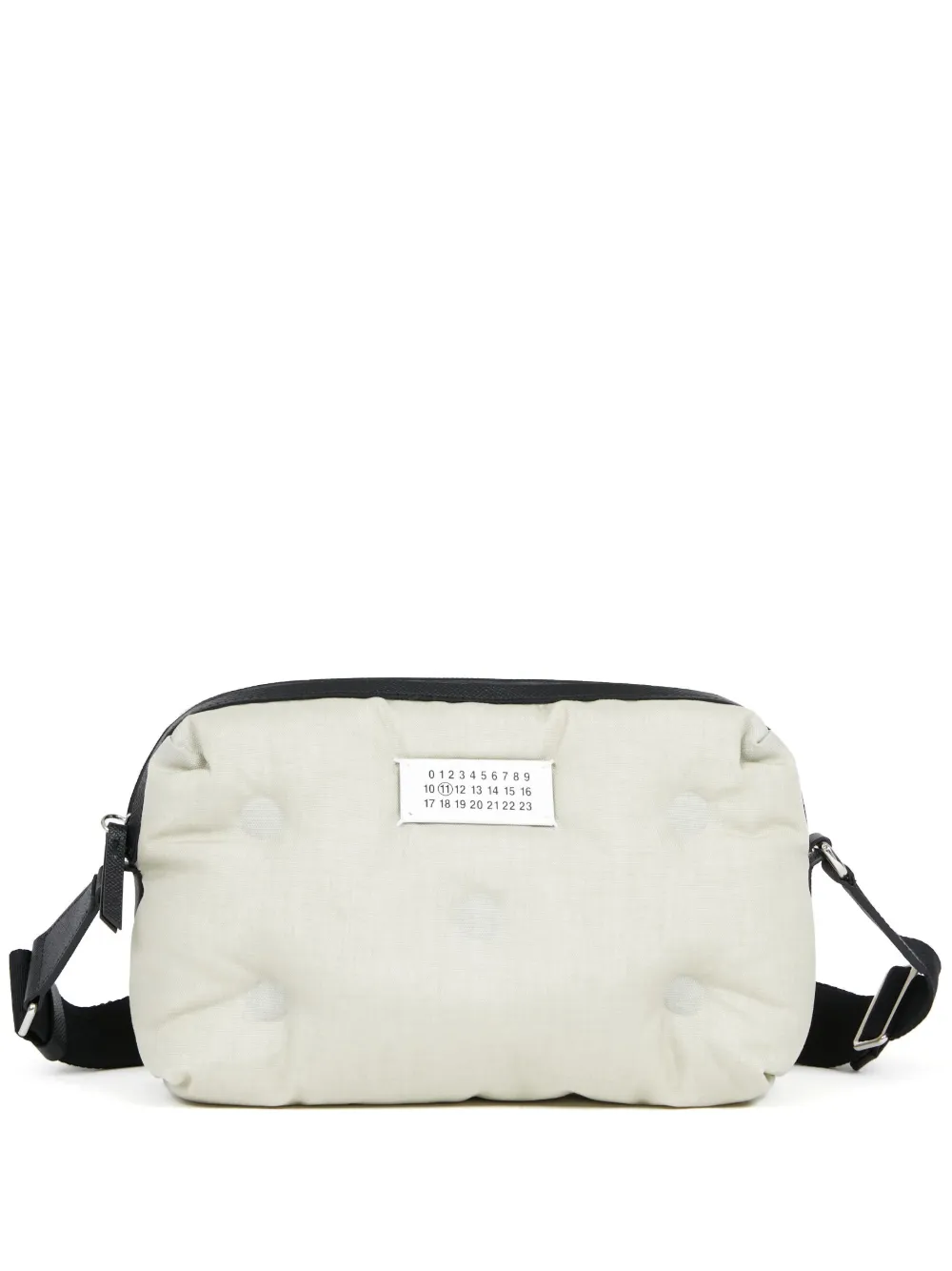 gris clair/noir design matelassé patch logo sur le devant bride ajustable poche arrière zippée fermeture zippée sur le dessus compartiment principal logo imprimé à l’intérieur poche intérieure zippée