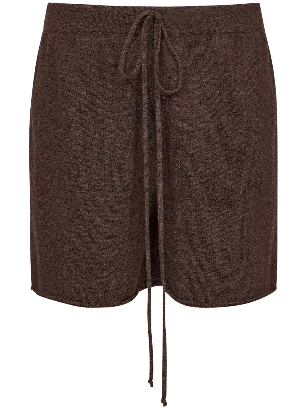 chocolat cachemire et laine mélangés coutures signature taille élastique à lien de resserrage deux poches latérales passepoilées coupe courte