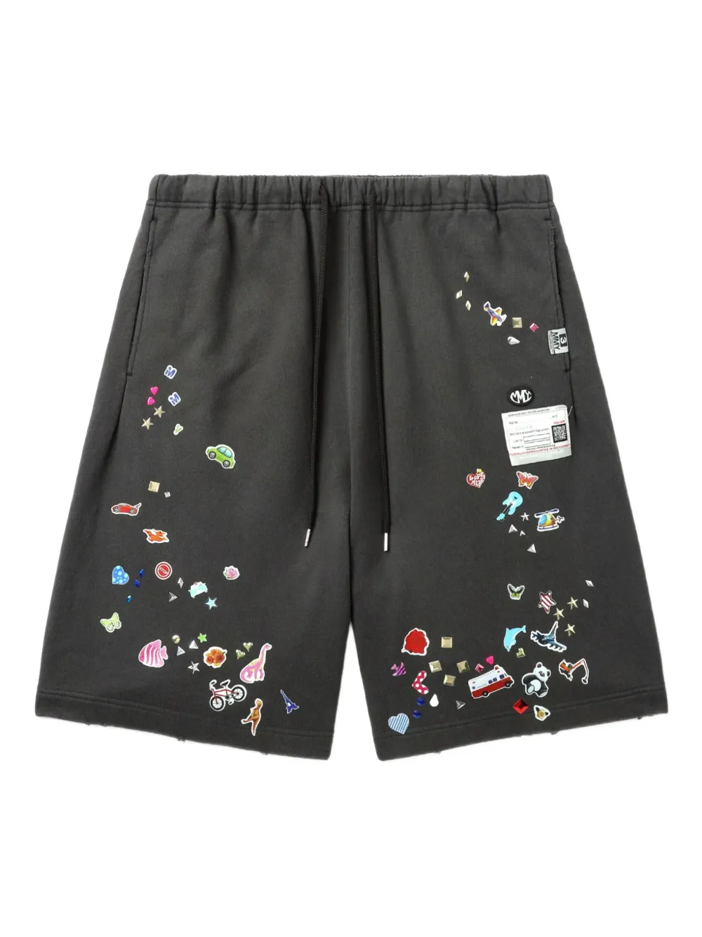 noir coton patchs brodés bords frangés taille à lien de resserrage poche plaquée