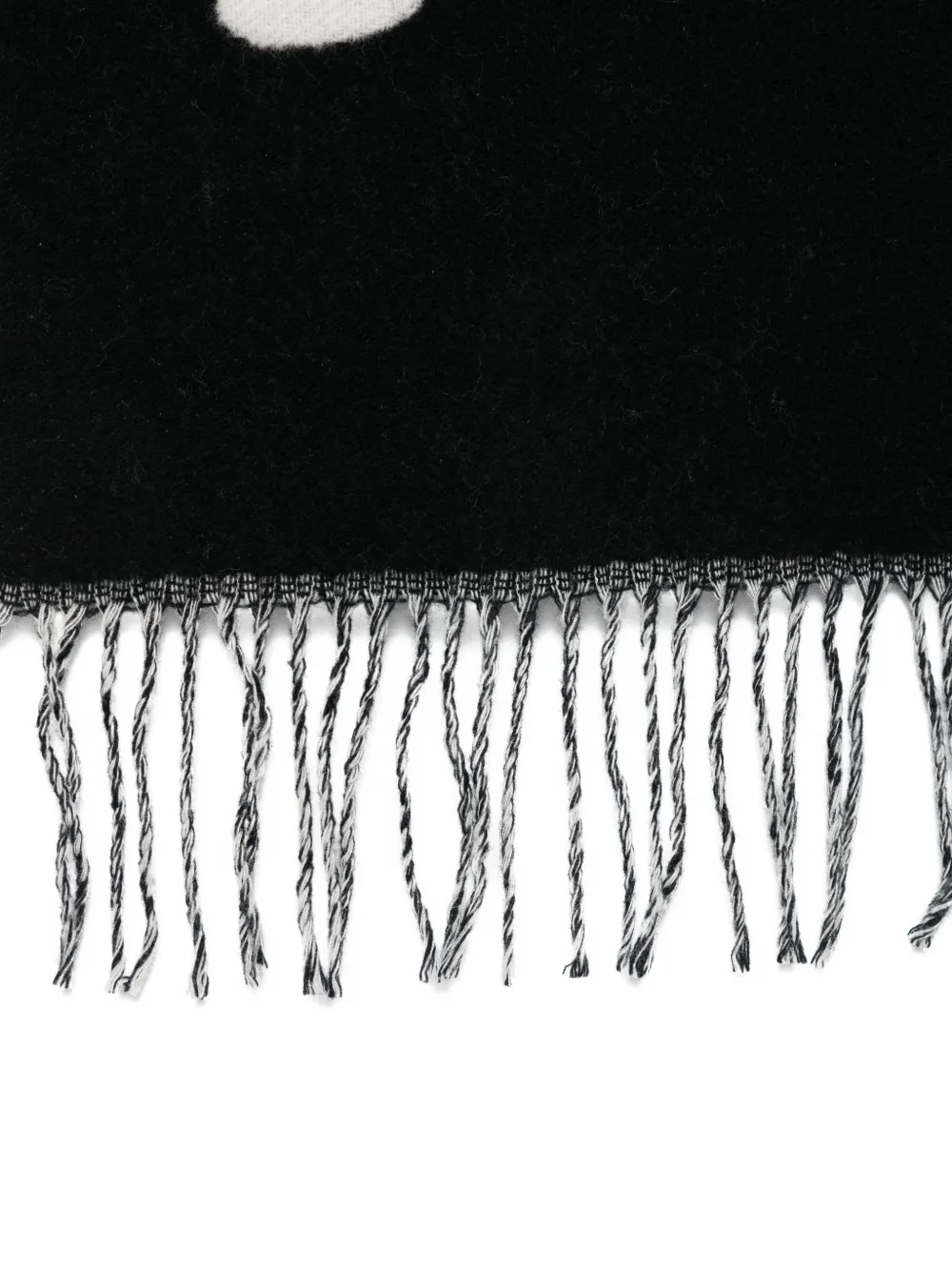 zwart wol jacquard logo zoom met franjes