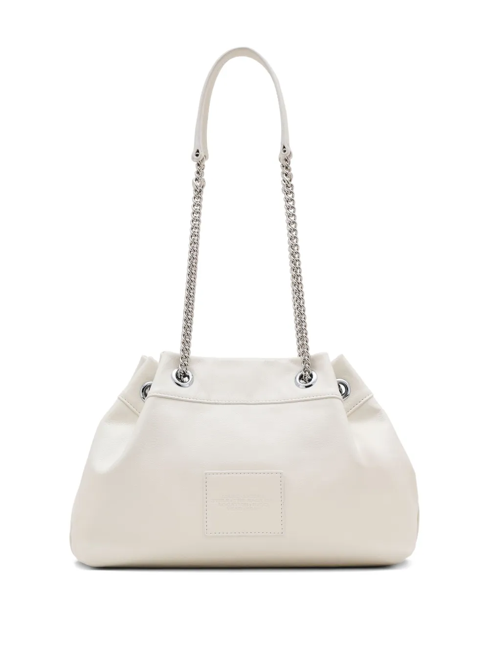wit verborgen magneetsluiting leren schouderband met schakels binnenvak met ritssluiting logo-reliëf op de voorkant