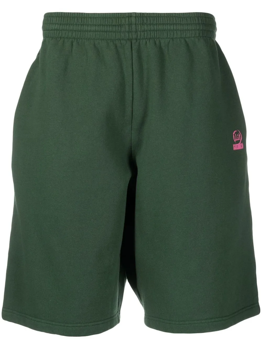 Vert forêt, coton, logo imprimé sur le devant, ceinture élastique, poches latérales fendues, poches arrière passepoilées, coupe droite, hauteur genou.