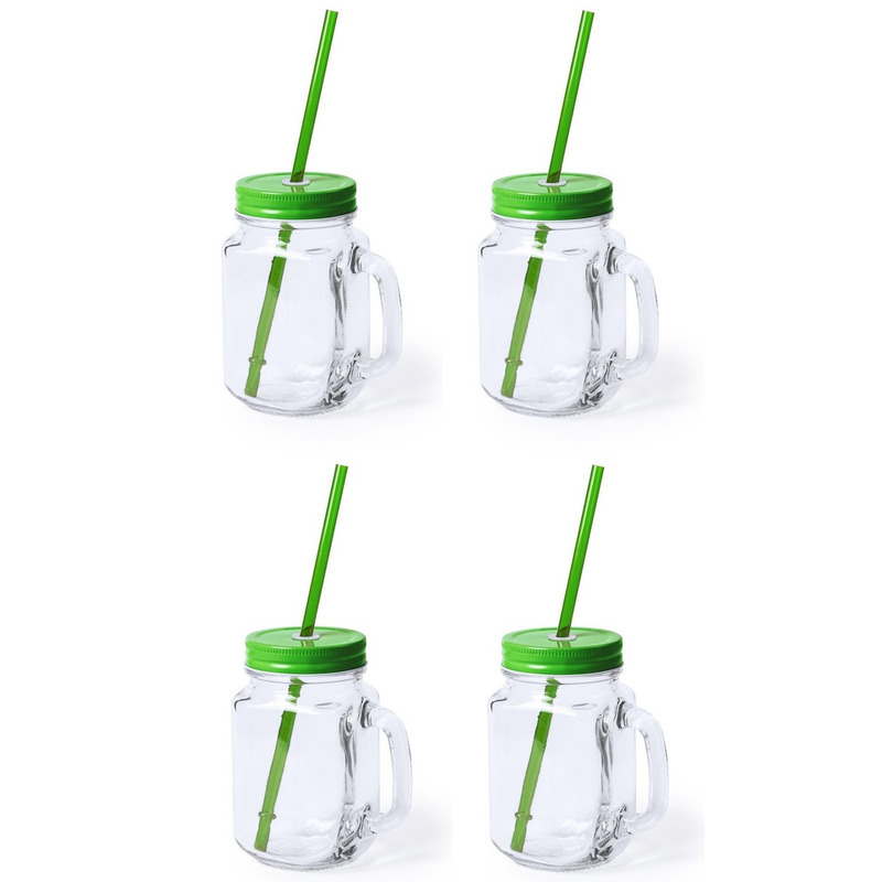 4 stuks glazen Mason Jar drinkbekers/potjes met dop in het groen, en rietje, met een inhoud van 500 ml. Limonade, Fruit shakes of andere drankjes anti lekken drinkpotten bekers. Formaat ongeveer: 7,5 x 13,5 cm. Let op: u ontvangt een willekeurig kleur rietje (doorzichtig of grijs).