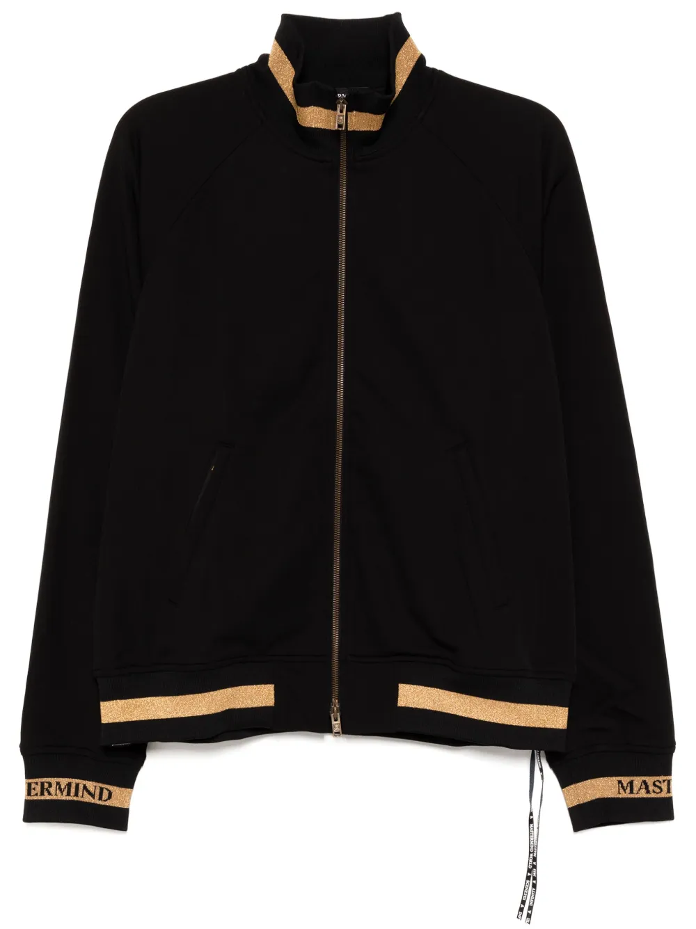 noir fermeture zippée devant imprimé à rayures col montant ourlet et bords nervurés