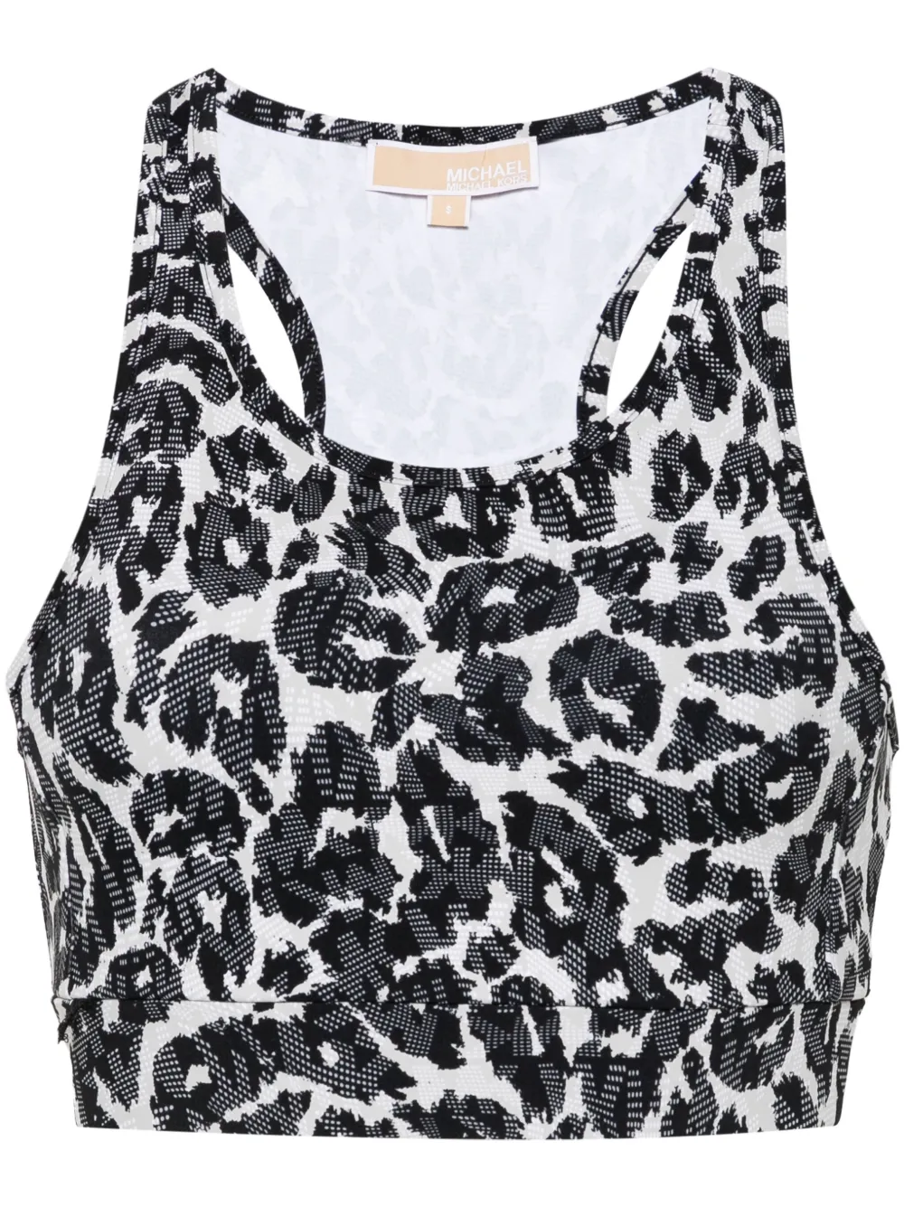 argenté noir mélange de nylon recyclé design stretch imprimé léopard logo imprimé all-over col rond dos nageur design à enfiler design sans manches ourlet élastiqué ^