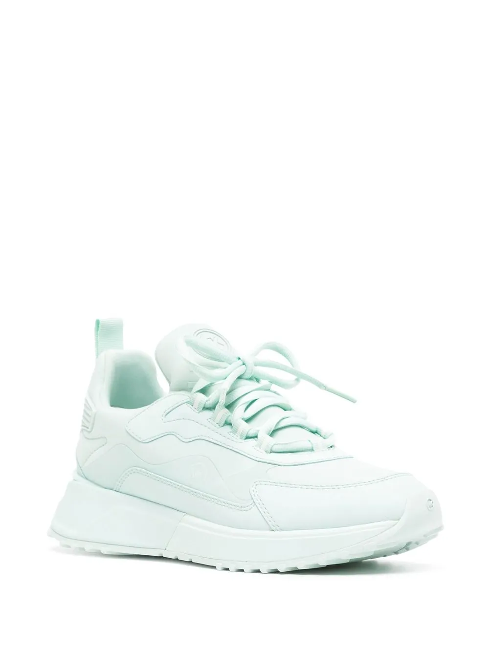 Pastelgroen, logoprint aan de zijkant, logopatch op de tong , vetersluiting aan de voorkant, ronde neus, gedempt voetbed, logo op het hielstuk, dubbele ritssluiting bij de hiel en rubberen zool.
