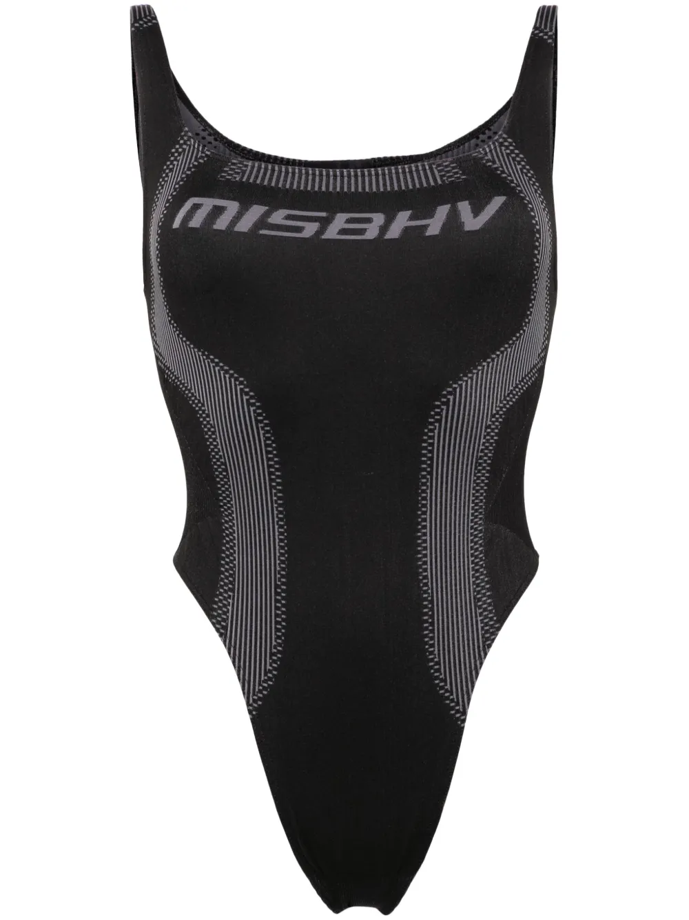 noir/gris design stretch jacquard à motifs logo brodé sur la poitrine encolure carrée bretelles fines design une pièce