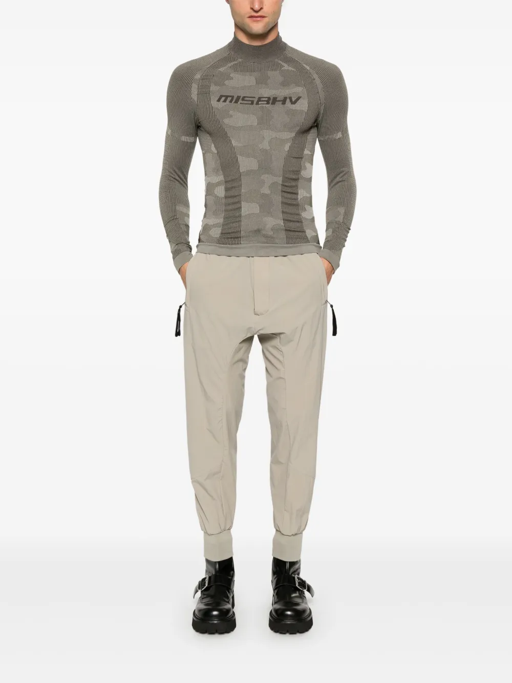 bruin intarsia logo camouflageprint hoge hals lange mouwen rechte zoom