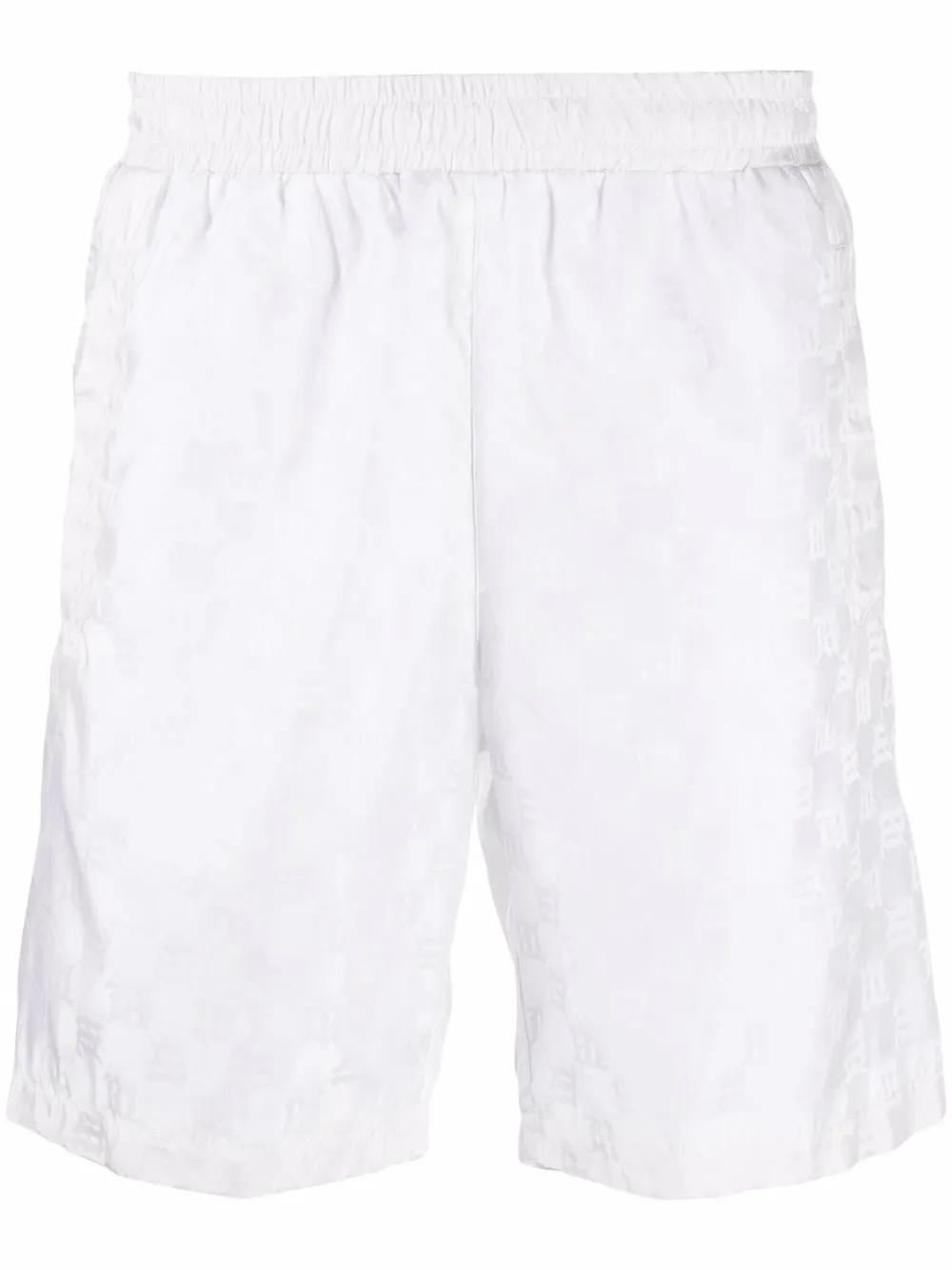 Motif monogrammé, ceinture élastique, deux poches latérales fendues, ourlet droit. Couleur : blanc.