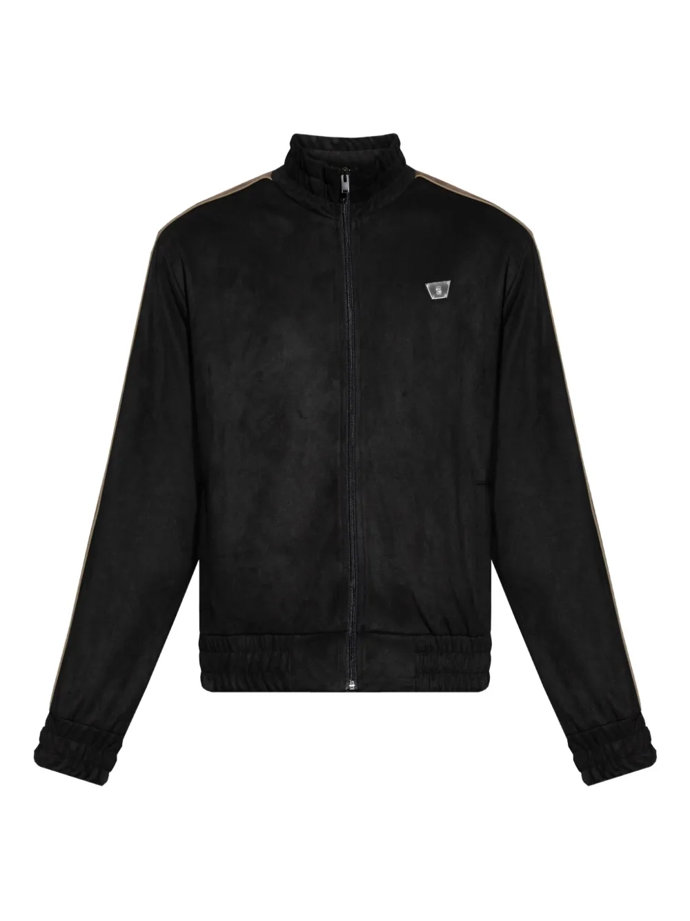noir détails rayés fermeture zippée plaque logo ourlet élastiqué poignets élastiqués