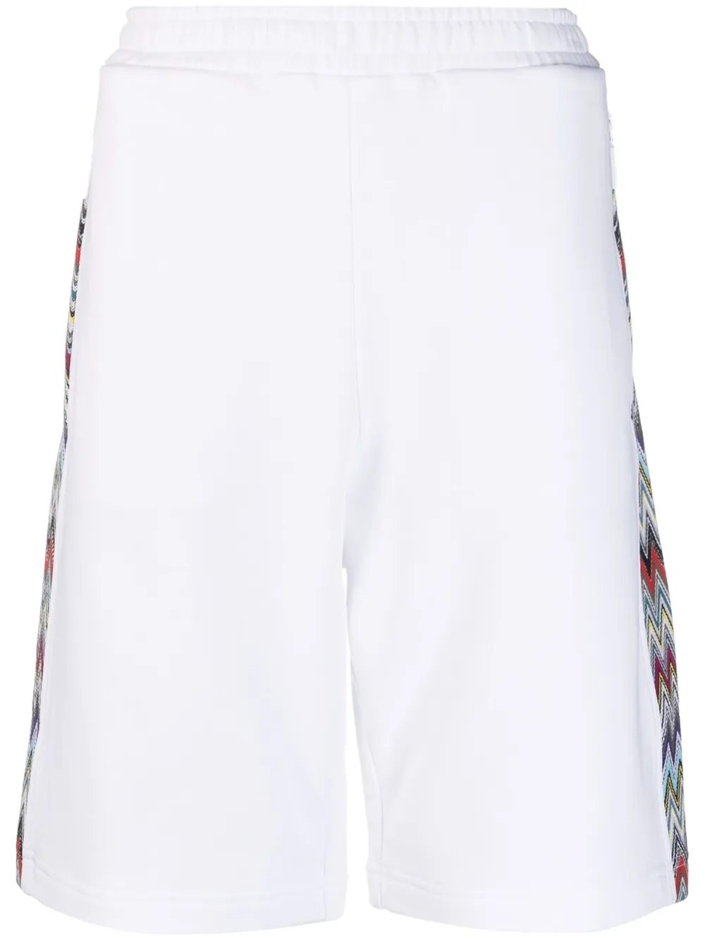 Blanc/multicolore, coton, empiècements contrastants, tressage zigzag signature, ceinture élastique, deux poches latérales zippées, hauteur genou. Veuillez noter que l’article que vous recevrez peut présenter de légères distinctions par rapport à l’article photographié ci-contre. Ces différences sont dues au processus de fabrication artisanal de toutes les pièces Missoni.