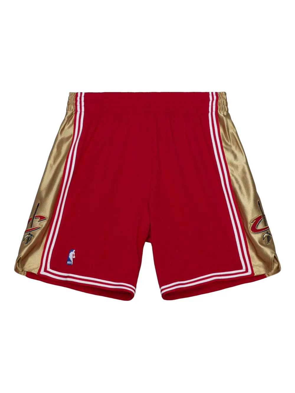 rouge carmin empiècements latéraux dorés bordures blanches logo brodé tissu en résille taille élastique
