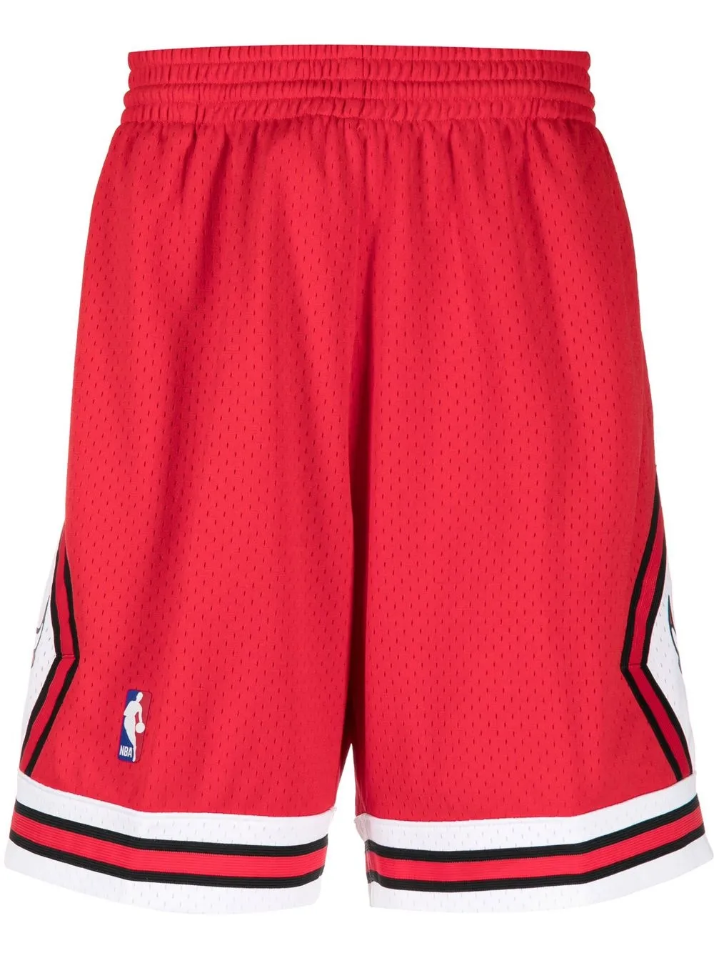 Empiècements en résille, motif imprimé, détails rayés, ceinture élastique, coupe droite, hauteur genou.