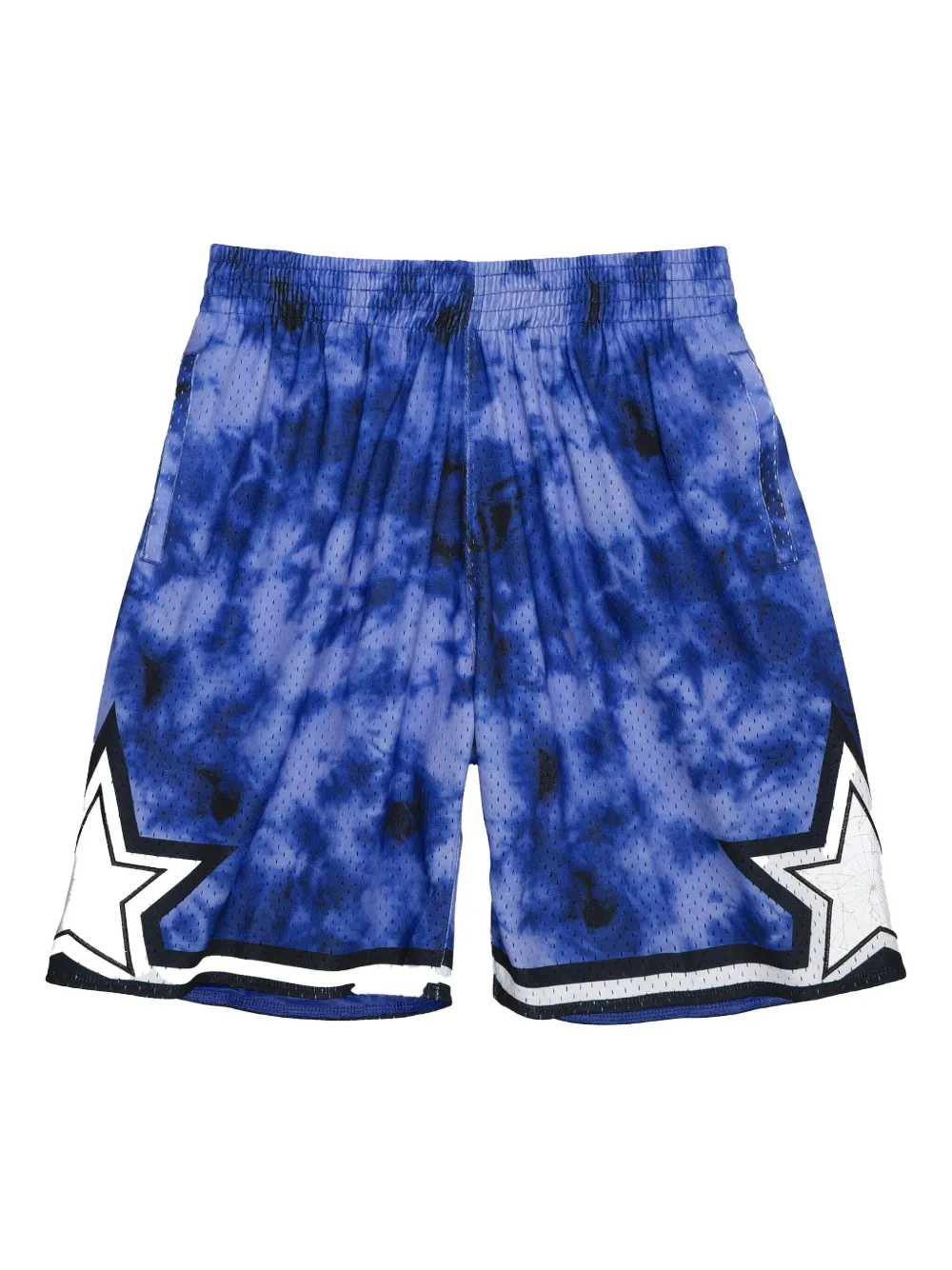 bleu/noir/blanc mesh deux poches latérales passepoilées motif d’étoiles broderie étoile longueur au dessus du genou