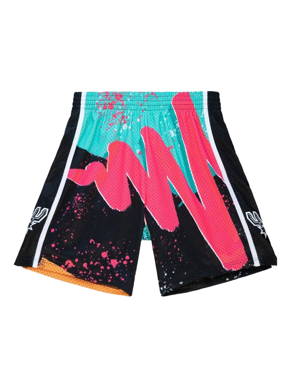 noir ceinture élastique design perforé imprimé graphique intégral poches latérales fendues détails rayés