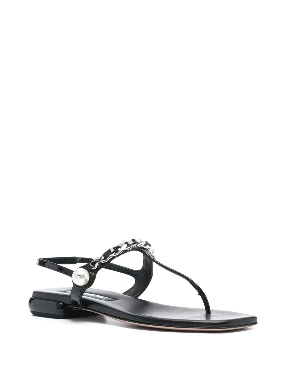 zwart kalfsleer lakleren afwerking vierkante neus verfraaid met imitatieparels schakelkettingdetails elastische band leren binnenzool met logo leren binnenzool met logo