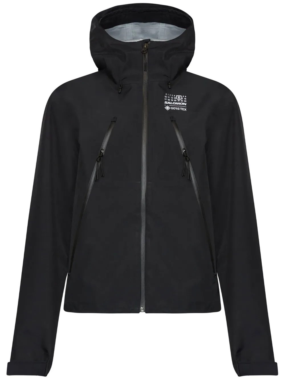 noir manches longues fermeture zippée devant capuche à lien de resserrage deux poches zippées logo imprimé sur la poitrine ourlet droit