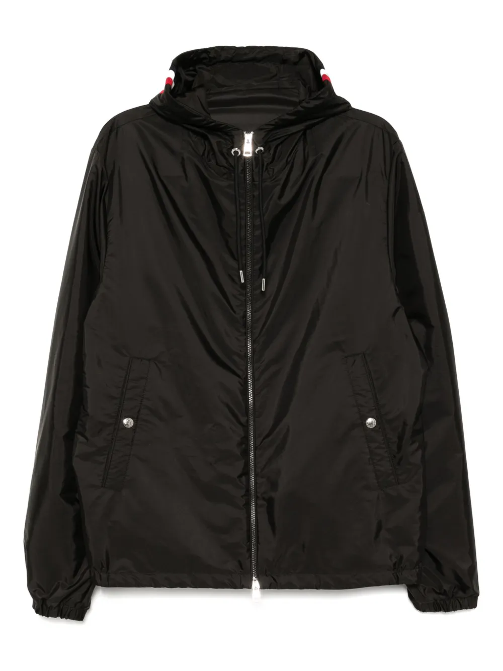 noir fermeture zippée à double sens sur le devant capuche à lien de resserrage deux poches latérales boutonnées