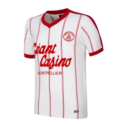 Montpellier HSC retro voetbalshirt 1983-1984 van COPA Football voor volwassenen. Dit Montpellier retro voetbalshirt is gebaseerd op het het uitshirt welke gedragen werd in het seizoen 1983/84. Het Montpellier Hérault Sport Club shirt is overwegend wit en wordt gekenmerkt door dunne rode strepen. De polo kraag en de biesjes zijn ook in het rood. Verder wordt het retro voetbalshirt van Montpellier gekenmerkt door de naam van de toenmalige sponsor Geant Casino midden op de borst. Links op de borst is het embleem van de Frans voetbalclub aangebracht. Dit Montepllier voetbalshirt werd gedragen door enkele talentvolle jonge spelers zoals Laurent Blanc, Pascal Baills en Franck Passi. Materiaal 100% katoen.