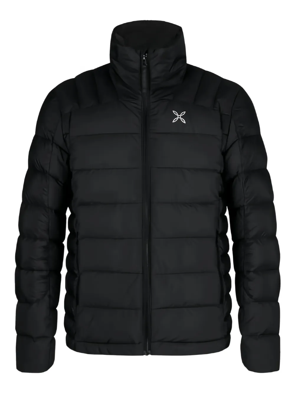 noir design matelassé col montant fermeture zippée détail de logo manches longues
