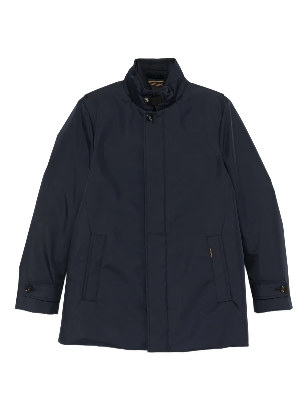 bleu marine col montant fermeture boutonnée poches passepoilées manches longues poignets boutonnés