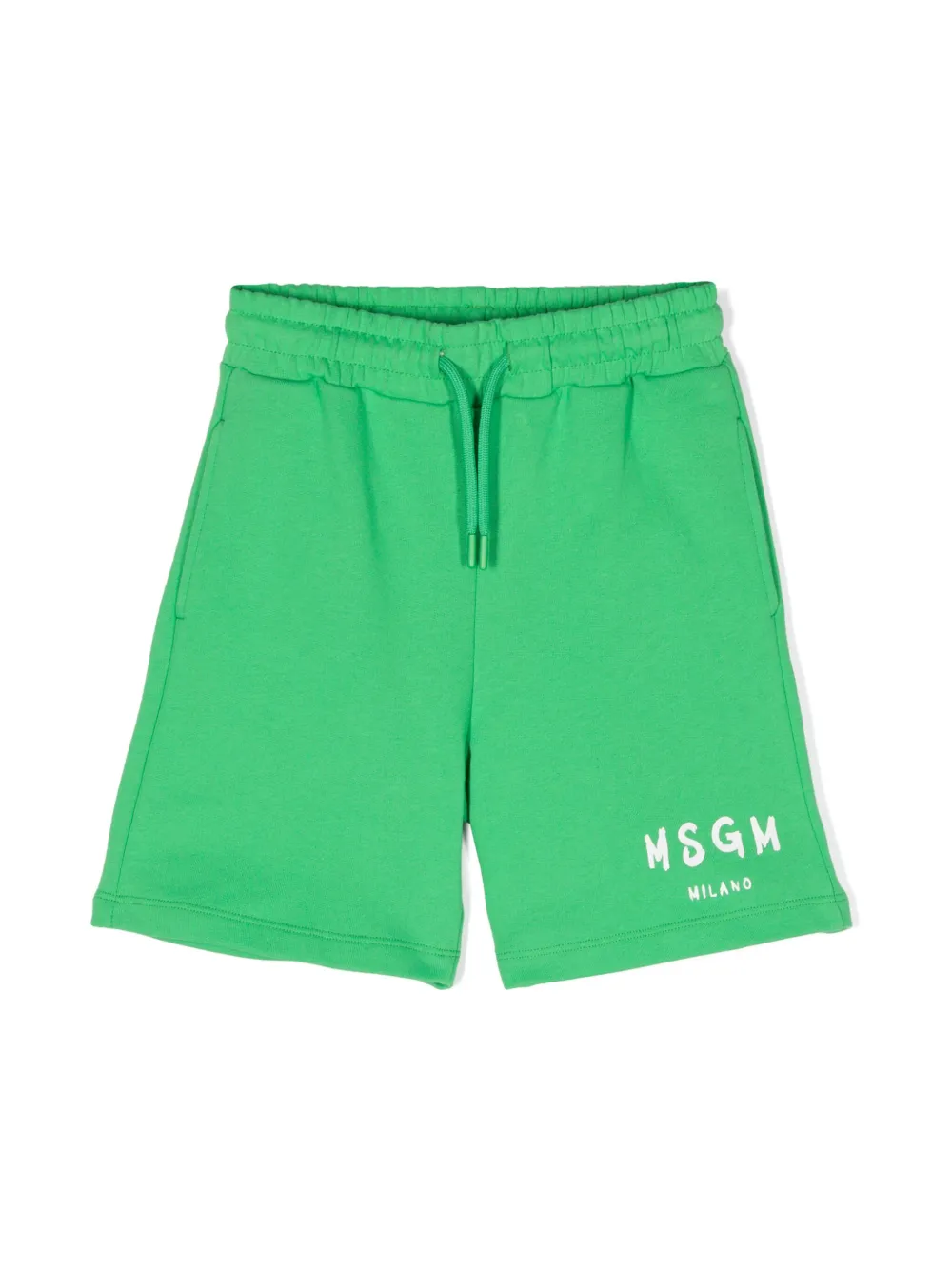 vert fluorescent coton texture jersey poches latérales fendues logo imprimé sur la cuisse poche arrière plaquée doublure en éponge taille élastique à lien de resserrage