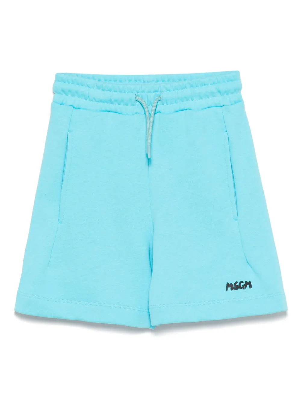 bleu ciel taille élastique à lien de resserrage poches latérales fendues ourlet à logo imprimé
