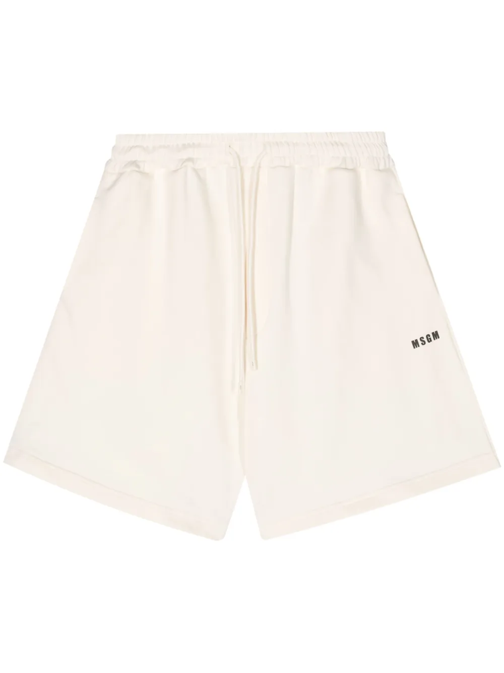 blanc crème coton texture jersey logo imprimé sur la cuisse taille élastique à lien de resserrage coupe droite deux poches latérales passepoilées poche arrière plaquée ourlet droit longueur au dessus du genou doublure French en éponge