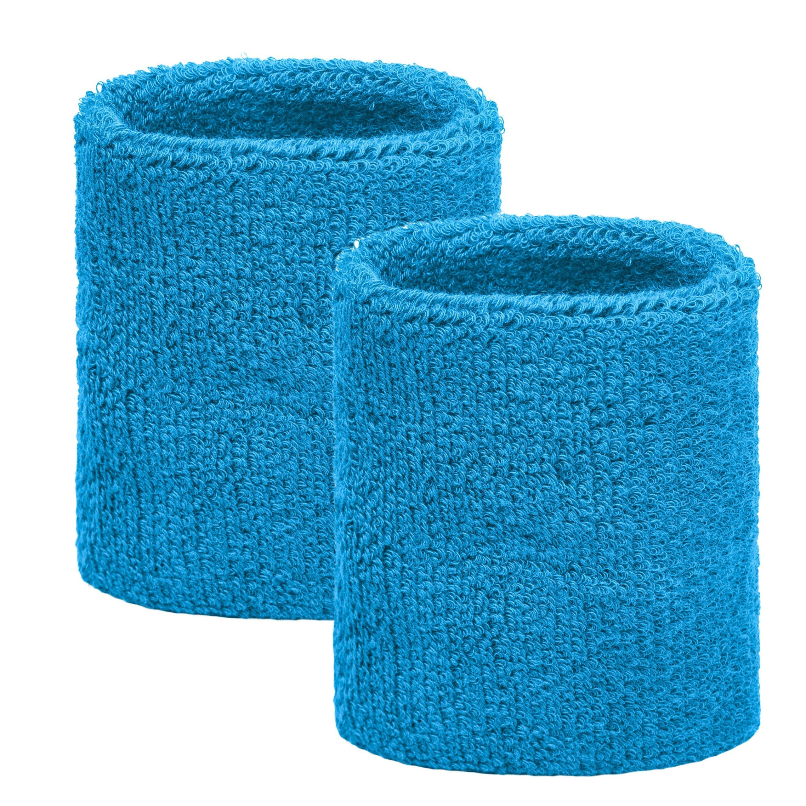 Zweetbandjes in verschillende kleuren, per 5x stuks. De zweetbandjes zijn 8 cm breed. Materiaal: 80% katoen en 20% elastaan. Gekleurde zweetbandjes voor een sportdag of evenement. Maak teams of groepen op basis van kleur met deze opvallende polsbandjes.