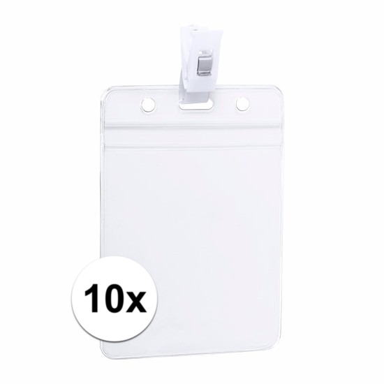 ID badgehouder transparant/wit, 10 stuks. Deze badgehouder is gemakkelijk te bevestigen met het clipje. Formaat: 12,2 x 8,5 cm. Inhoud: 10 stuks.