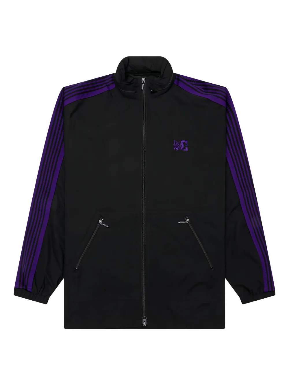 noir détails rayés fermeture zippée cape à papillons brodés col montant manches longues