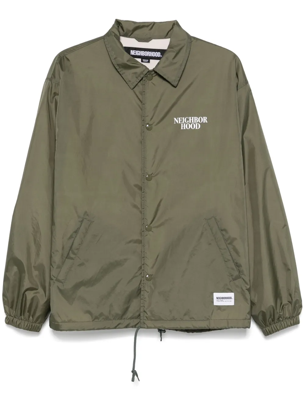 vert olive fermeture à boutons pression sur le devant logo imprimé sur la poitrine deux poches latérales zippées ourlet à lien de resserrage